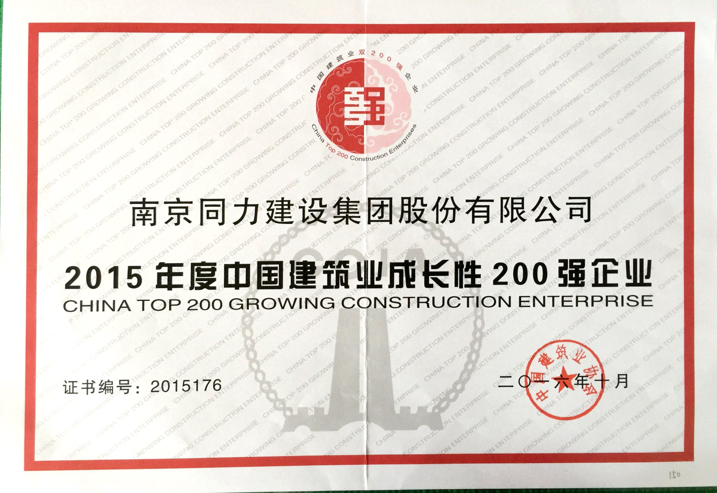 公司獲得《2015年度中國(guó)建筑業(yè)成長(zhǎng)性20...