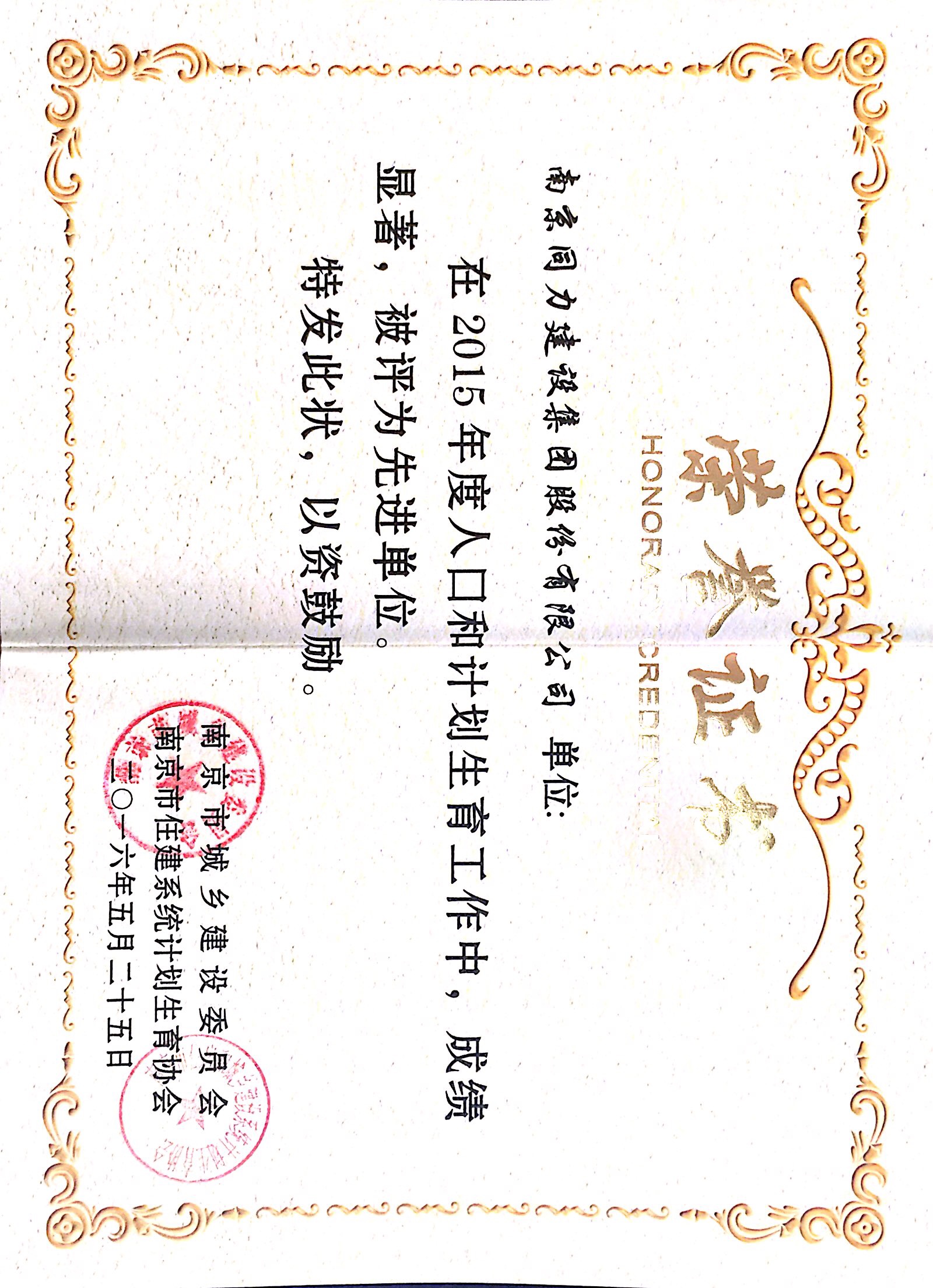 公司被評(píng)為“2015年度人口和計(jì)劃生育先...